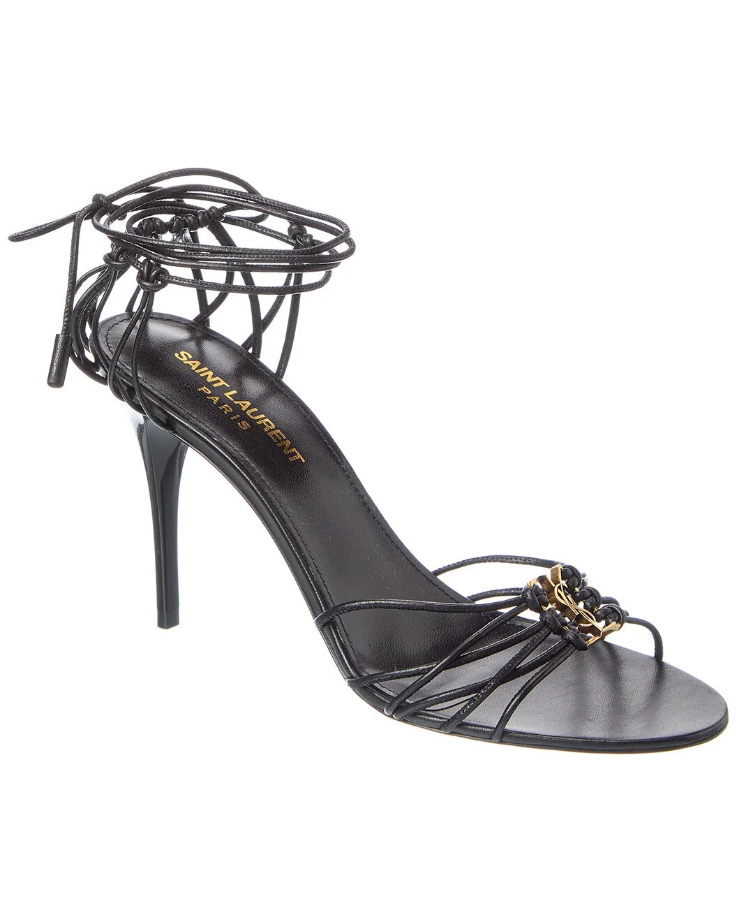 - About the brand: Iconic, modern glam. Tres chic! - Please note: Size selections are European. For US conversions, please reference size chart. - Based on feedback from Members, this brand typically runs small. We suggest sizing up a half size for most styles. - Made in Italy - Babylone 90 Leather Sandal in black leather and gold-tone hardware with mo - Self-tie ankle wrap closure - Smooth leather insole - Smooth leather sole - 3.5in heel - Please note: All measurements are approximate and were taken from a size 37; slight variations may occur. - Our products are 100% genuine. In some cases we purchase merchandise from trusted independent suppliers and not directly from the brand owner. In all cases we stand by the authenticity of every product sold on our site.