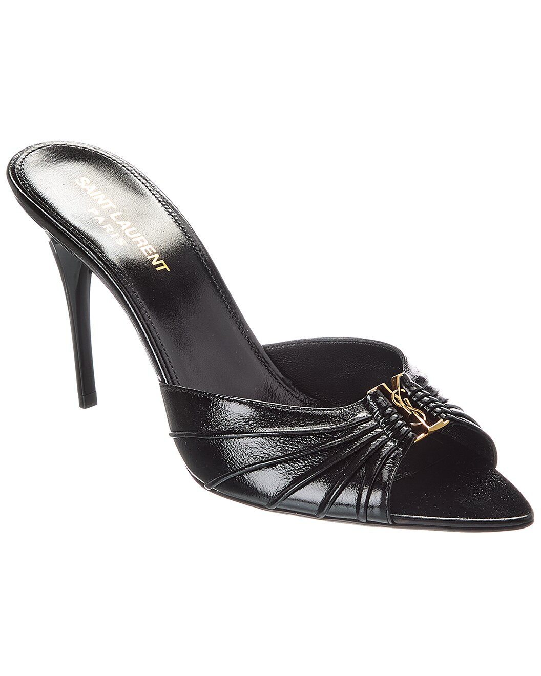 - About the brand: Iconic, modern glam. Tres chic! - Please note: Size selections are European. For US conversions, please reference size chart. - Based on feedback from Members, this brand typically runs small. We suggest sizing up a half size for most styles. - Made in Italy - Babylone Leather Mule in black ruched leather and gold-tone hardware with monogram accent - Lightly padded leather insole - Smooth leather sole - 3.5in heel - Please note: All measurements are approximate and were taken from a size 37; slight variations may occur. - Our products are 100% genuine. In some cases we purchase merchandise from trusted independent suppliers and not directly from the brand owner. In all cases we stand by the authenticity of every product sold on our site.