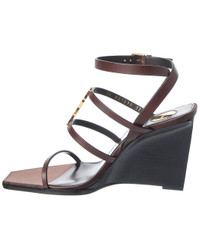 - About the brand: Iconic, modern glam. Tres chic! - Please note: Size selections are European. For US conversions, please reference size chart. - Based on feedback from Members, this brand typically runs small. We suggest sizing up a half size for most styles. - Made in Italy - Cassandra 90 Leather Wedge Sandal in brown leather and gold-tone hardware with monogram accent - Adjustable ankle strap with buckle closure - Smooth insole - Smooth leather sole - 3.5in heel - Please note: All measurements are approximate and were taken from a size 37; slight variations may occur. - Our products are 100% genuine. In some cases we purchase merchandise from trusted independent suppliers and not directly from the brand owner. In all cases we stand by the authenticity of every product sold on our site.