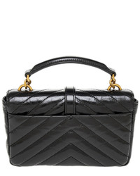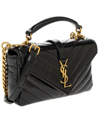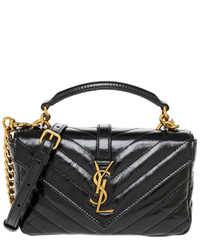 - About the brand: Iconic, modern glam. Tres chic! - Made in Italy - College Mini Leather Shoulder Bag in black leather and bronze-toned hardware - Design details: Shiny crackled leather, chevron quilted overstitching, Cassandre hardware - Interior design details: one main compartment, zip pocket - Measures 7.9in wide x 5.1in high x 1.2in deep - Top handle drops 3.5in - Adjustable removable shoulder straps drops 19.7in - Magnetic snap closure - Please note: All measurements were taken by hand and are approximate; slight variations may occur. - Our products are 100% genuine. In some cases we purchase merchandise from trusted independent suppliers and not directly from the brand owner. In all cases we stand by the authenticity of every product sold on our site.