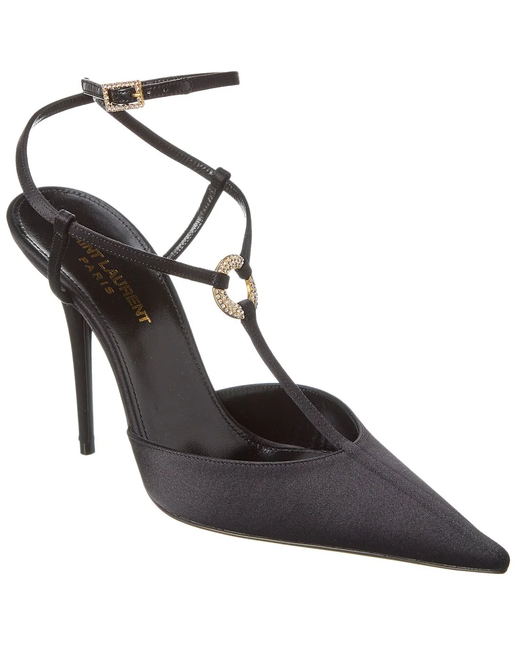 - About the brand: Iconic, modern glam. Tres chic! - Please note: Size selections are European. For US conversions, please reference size chart. - Based on feedback from Members, this brand typically runs small. We suggest sizing up a half size for most styles. - Made in Italy - Luna 105 Satin Slingback Pump in black satin and gold-tone hardware with crystal-embellished buckles - Adjustable ankle strap with buckle closure - Lightly padded leather insole - Smooth leather sole - 4.5in heel - Please note: All measurements are approximate and were taken from a size 37; slight variations may occur. - Our products are 100% genuine. In some cases we purchase merchandise from trusted independent suppliers and not directly from the brand owner. In all cases we stand by the authenticity of every product sold on our site.