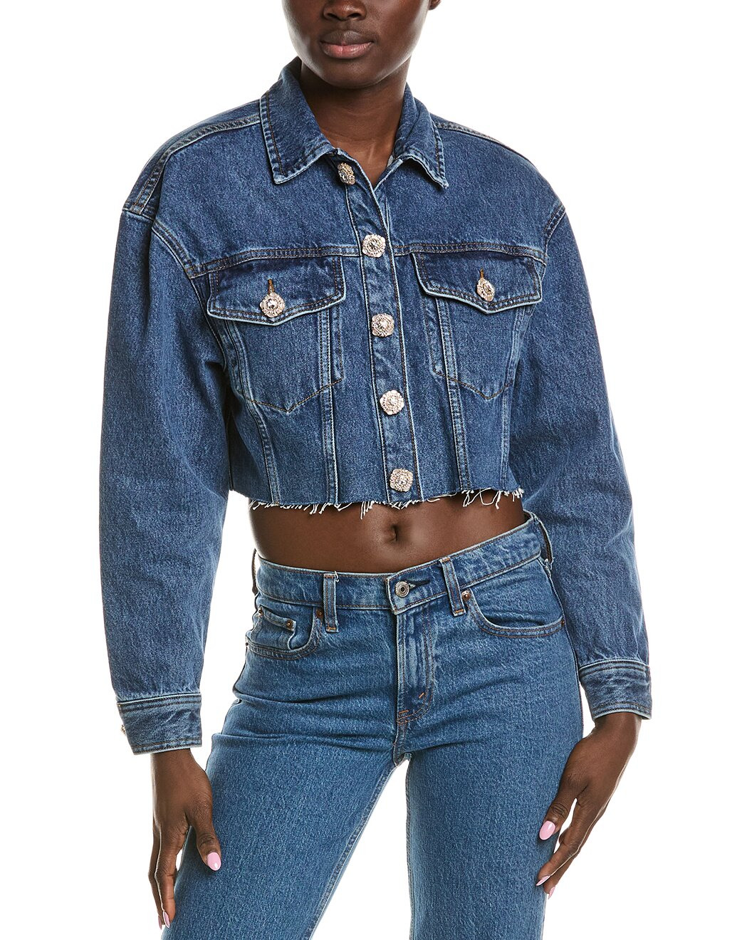 - About the brand: Parisian pieces through and through. - Cropped Denim Jacket in blue jean with dual chest pockets - Please note: Size selections are European. For US conversions, please reference the size chart. - Approximately 17in from shoulder to hem - Model is 5'10 and is wearing a size 34. Measurements may vary slightly by size. - Snap closure - 100% cotton - Machine wash - Imported