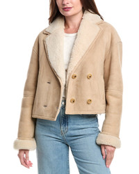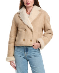 - About the brand: Parisian pieces through and through. - Shearling Jacket in beige with front pockets - Please note: Size selections are European. For US conversions, please reference the size chart. - Approximately 20in from shoulder to hem - Model is 5'10.5 and is wearing a size 36. Measurements may vary slightly by size. - Double-breasted button closure - 100% sheep shearling - Clean by leather and fur expert - Imported