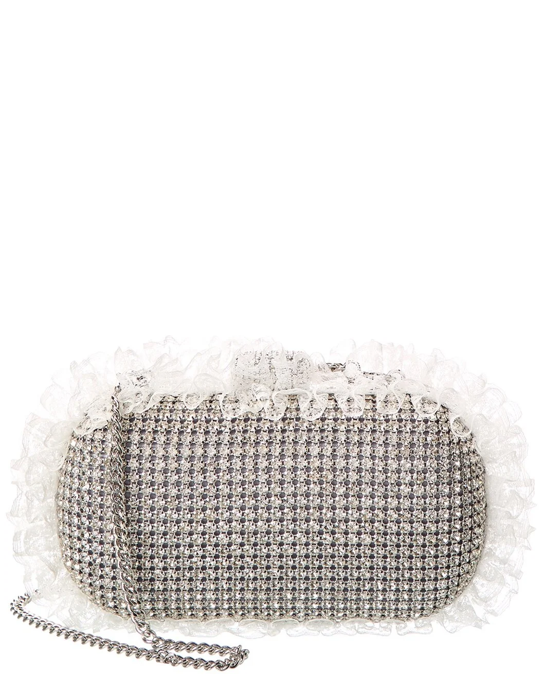 - Color/material: silver fabric & lace - Design details: silver-tone hardware, lace trims - Interior design details: slit pocket & card slot - Measures 7.08in wide x 3.9in high x 2.3in deep - Shoulder strap drops 43.3in - Snap closure - Imported - Please note: All measurements were taken by hand and are approximate; slight variations may occur.