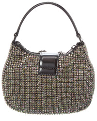 Self-Portrait Rhinestone Chainmail Leather Crescent Bag