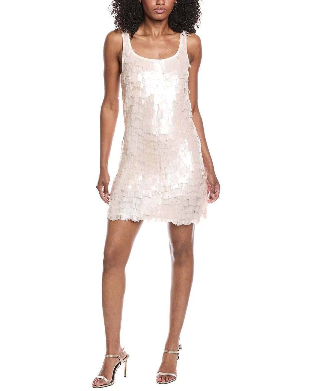- Color/pattern: sand - Approximately 33in from shoulder to hem - Model is 5'9 and is wearing a size small. Measurements may vary slightly by size. - Design details: scoop neck, and sequin embellishments - Slip-on styling - 100% polyester - Dry clean only - Imported