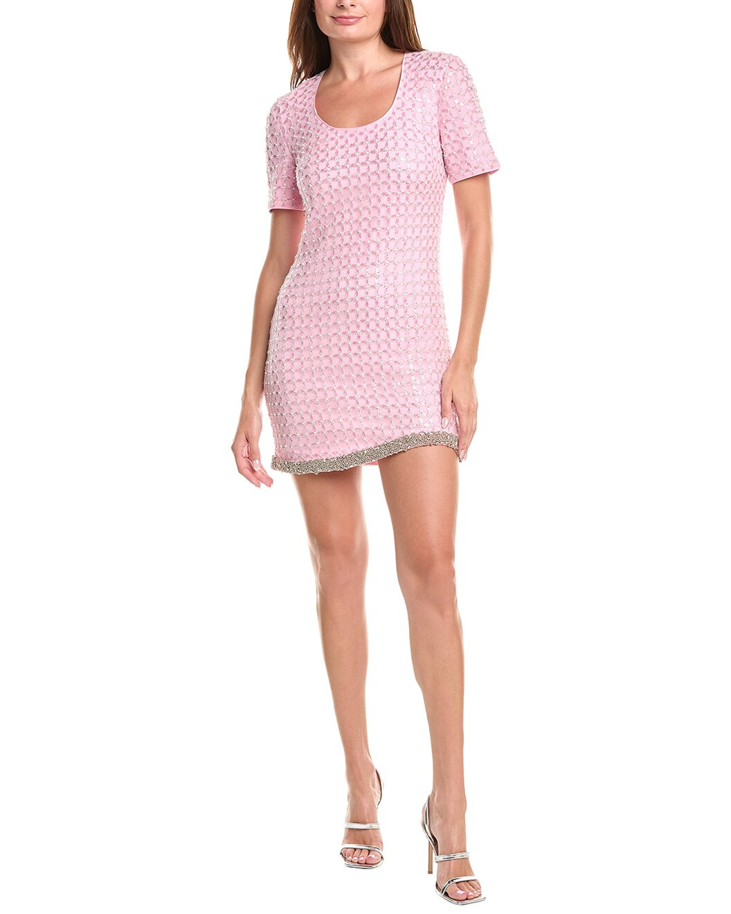 - Color/pattern: candy pink - Approximately 35in from shoulder to hem - Model is 5'10.5 and is wearing a size 4. Measurements may vary slightly by size. - Design details: scoop neck and allover embellishments - Side seam zipper closure - 100% nylon - Lining: 100% polyester - Dry clean only - Imported