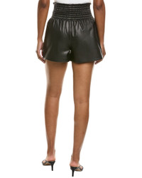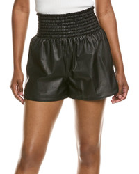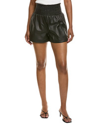 - Color/pattern: black - Inseam approximately 3in; 14in rise - Model is 5'9 and is wearing a size 2. Measurements may vary slightly by size. - Design details: smocked waist - Slip-on styling - 100% lamb leather - Lining: 97% polyester, 3% elastane - Dry clean only - Imported