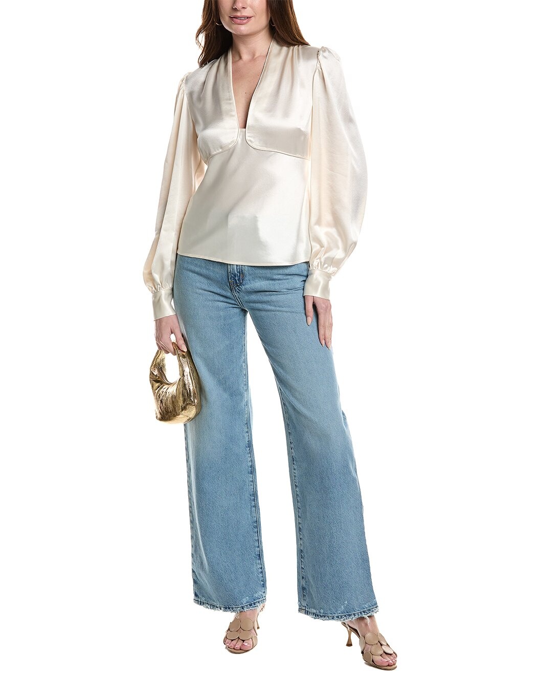 - Color/pattern: ivory - Approximately 24in from shoulder to hem - Model is 5'10.5 and is wearing a size 10. Measurements may vary slightly by size. - Design details: V-neck, and button cuffs - Slip-on styling - 76% acetate, 24% polyester - Machine wash - Imported