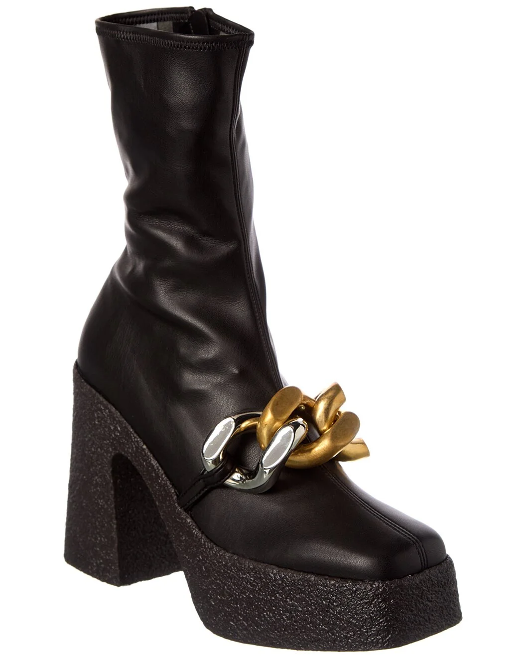 - About the brand: Sharp. Sophisticated. Sustainable. - Please note: Size selections are European. For US conversions, please reference size chart. - Made in Italy - Skyla Platform Boot in black vegan-friendly faux leather and gold-tone and silver-tone hardware with chain accent - Inner side zip-up closure - Lightly padded insole - Man-made sole - 4.5in heel - 2in platform - 7.5in shaft - 9in boot circumference - Please note: All measurements are approximate and were taken from a size 37; slight variations may occur. - The Boot Size Guide - Our products are 100% genuine. In some cases we purchase merchandise from trusted independent suppliers and not directly from the brand owner. In all cases we stand by the authenticity of every product sold on our site. - WARNING: - CA Residents - Prop 65