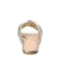 - About the brand: Championing artistry and function in women's footwear. - Crossover Leather Slide in platino leather with strappy design - Lightly padded leather insole - Smooth leather sole - Imported