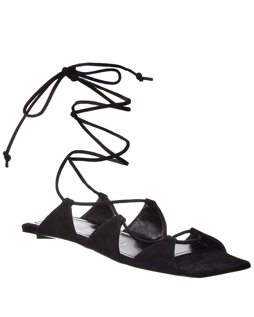 - Please note: Size selections are European. For US conversions, please reference size chart. - Made in Italy - Color/material: black suede - Design details: squared toe - Self-tie ankle wrap closure - Lightly padded leather insole - Smooth leather sole - Our products are 100% genuine. In some cases we purchase merchandise from trusted independent suppliers and not directly from the brand owner. In all cases we stand by the authenticity of every product sold on our site.