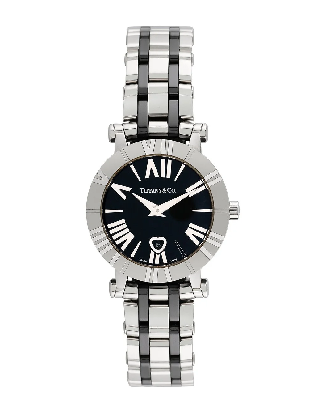 - About the brand: Timeless beauty and superior craftsmanship - a jewelry icon. - This is an authentic, pre-loved Tiffany & Co. piece. It's possible that there may be some gentle wear. - Quartz movement - Stainless Steel bracelet - Hidden butterfly clasp - Stainless Steel bezel - Stainless Steel case - Sapphire crystal - Push down crown - Black dial - Roman hour markers - Date display - Case: 30mm - Bracelet/strap: 15mm wide x 6.5 in long - Water-resistant up to 30 meters - Manufacturer's limited warranty - It is customary to treat most gemstones to achieve enhanced color and durability. Some of these treatments may not be permanent, and may require special care. - Independent Appraisal and Generic Box - The Watch Size Guide - WARNING: - CA Residents - Prop 65