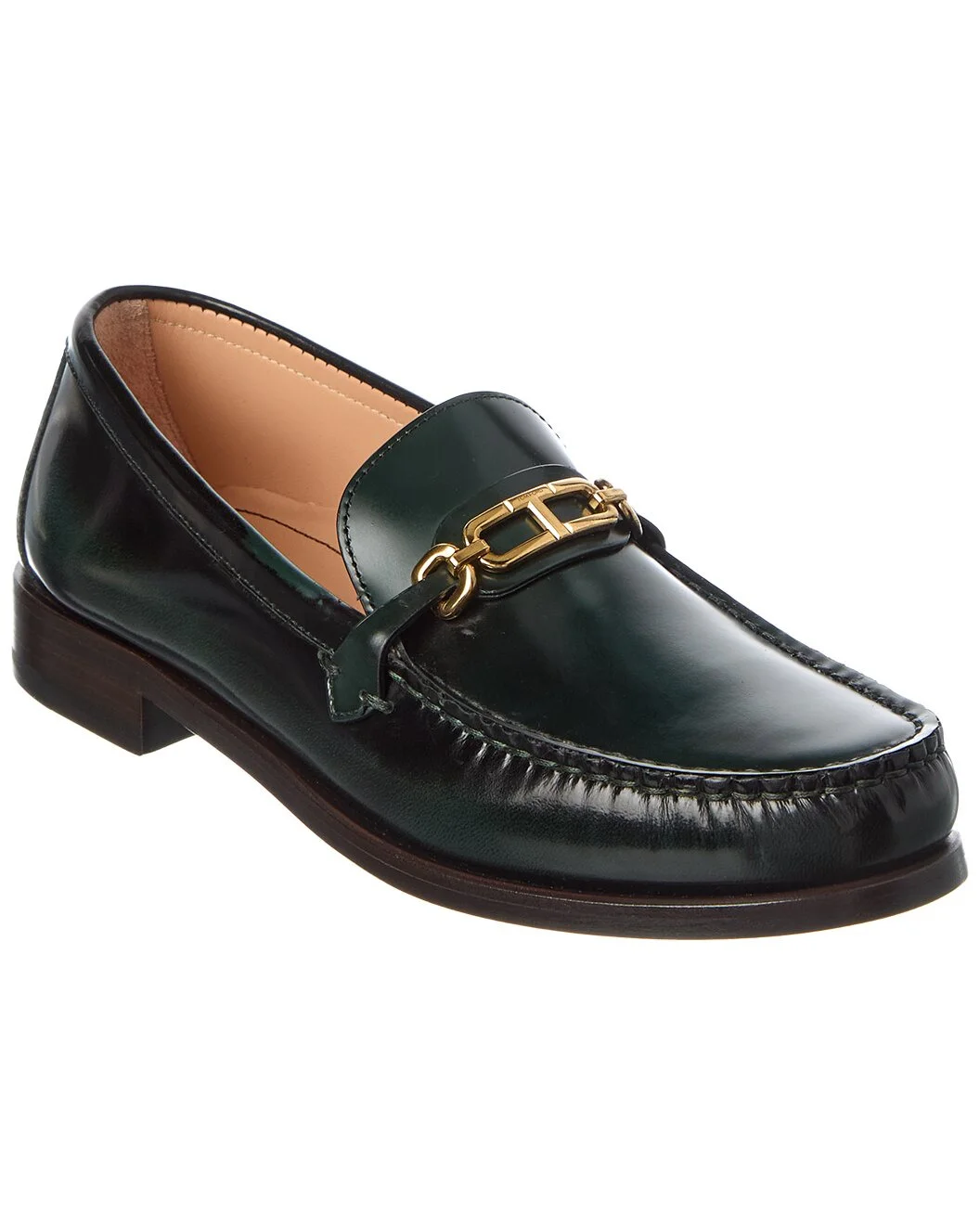 - About the brand: Inspired designs with a creative edge. - Please note: Size selections are European. For US conversions, please reference size chart. - Made in Italy - Abrasivato Leather Loafer in black leather and gold-tone hardware with chain logo accent - Lightly padded leather insole - Smooth leather sole - 1in heel - Please note: All measurements are approximate and were taken from a size 38; slight variations may occur. - Our products are 100% genuine. In some cases we purchase merchandise from trusted independent suppliers and not directly from the brand owner. In all cases we stand by the authenticity of every product sold on our site.