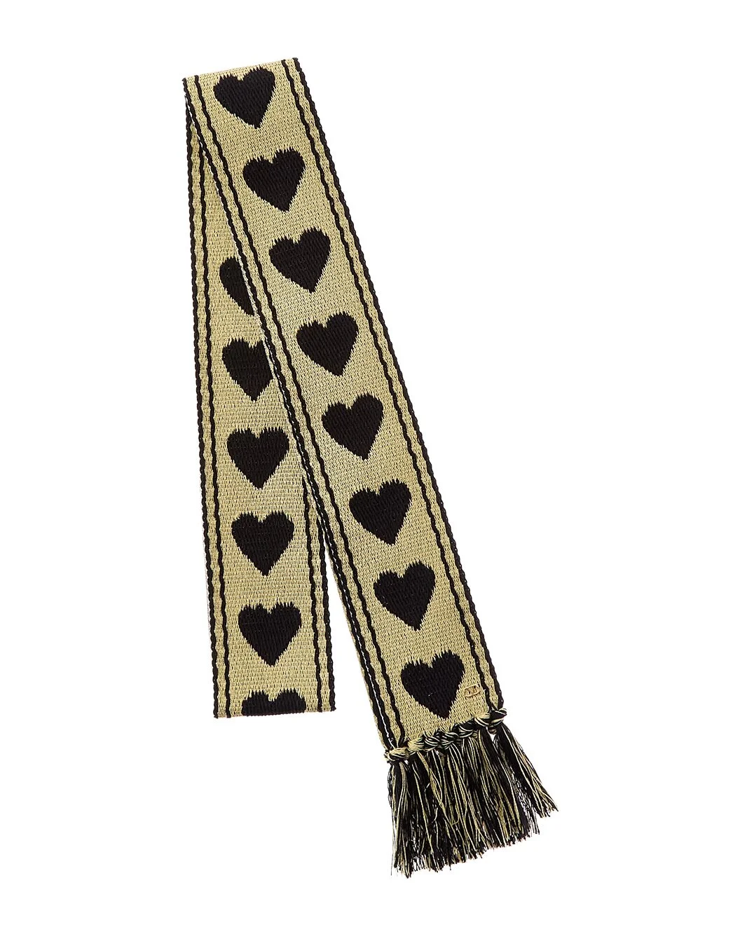 - About the brand: Signature elegance with a modern aesthetic. - Color/pattern: beige/black - Design details: gold-tone VLogo and fringe at both ends - Measures 71in long x 2.75in wide - 60% cotton, 30% acrylic, 10% polyamide - Dry clean only - Made in Italy - Please note: All measurements were taken by hand and are approximate; slight variations may occur. - Our products are 100% genuine. In some cases we purchase merchandise from trusted independent suppliers and not directly from the brand owner. In all cases we stand by the authenticity of every product sold on our site.