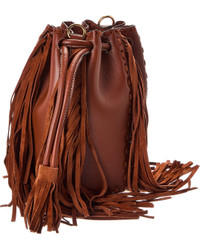 - About the brand: Signature elegance with a modern aesthetic. - Made in Italy - Leather Bucket Bag in brown leather and gold-tone hardware with VLogo accent and fringe detailing - Measures 6in wide x 8.25in high x 6in deep - Removable shoulder strap drops 20in - Drawstring closure - Please note: All measurements were taken by hand and are approximate; slight variations may occur. - Our products are 100% genuine. In some cases we purchase merchandise from trusted independent suppliers and not directly from the brand owner. In all cases we stand by the authenticity of every product sold on our site.