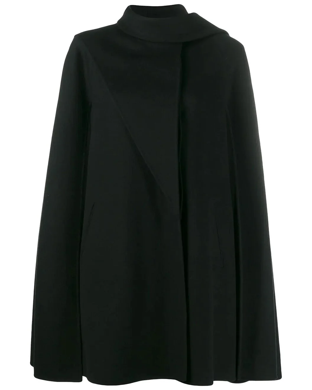 - About the brand: Signature elegance with a modern aesthetic. - Color/pattern: black - Design details: Never failing to strike the perfect balance between high-end glamour and refined staple pieces, Valentino’s latest collection offers this black virgin wool and cashmere asymmetric draped cape. Featuring an asymmetric neckline, a flared style, pleated details, side slit pockets and a draped neckline. - Wool, Cashmere - Dry clean only - Made in Italy - Our products are 100% genuine. In some cases we purchase merchandise from trusted independent suppliers and not directly from the brand owner. In all cases we stand by the authenticity of every product sold on our site.