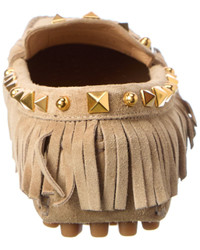 - About the brand: Signature elegance with a modern aesthetic. - Please note: Size selections are European. For US conversions, please reference size chart. - Based on feedback from Members, this brand typically runs small. We suggest sizing up a half size for most styles. - Made in Italy - Mocassini Leather Driver in brown suede with round toe and the iconic VLogo embellished with applied studs on the front, ankle lap with applied bangs and contrasting studs, Leather patch with VLogo Signature detail made with metal rivet appliques in antique brass-effect finish, Metal studs and cabochons with antique brass-effect finish - Leather insole - Rubber sole - 0.2in heel - Our products are 100% genuine. In some cases we purchase merchandise from trusted independent suppliers and not directly from the brand owner. In all cases we stand by the authenticity of every product sold on our site.