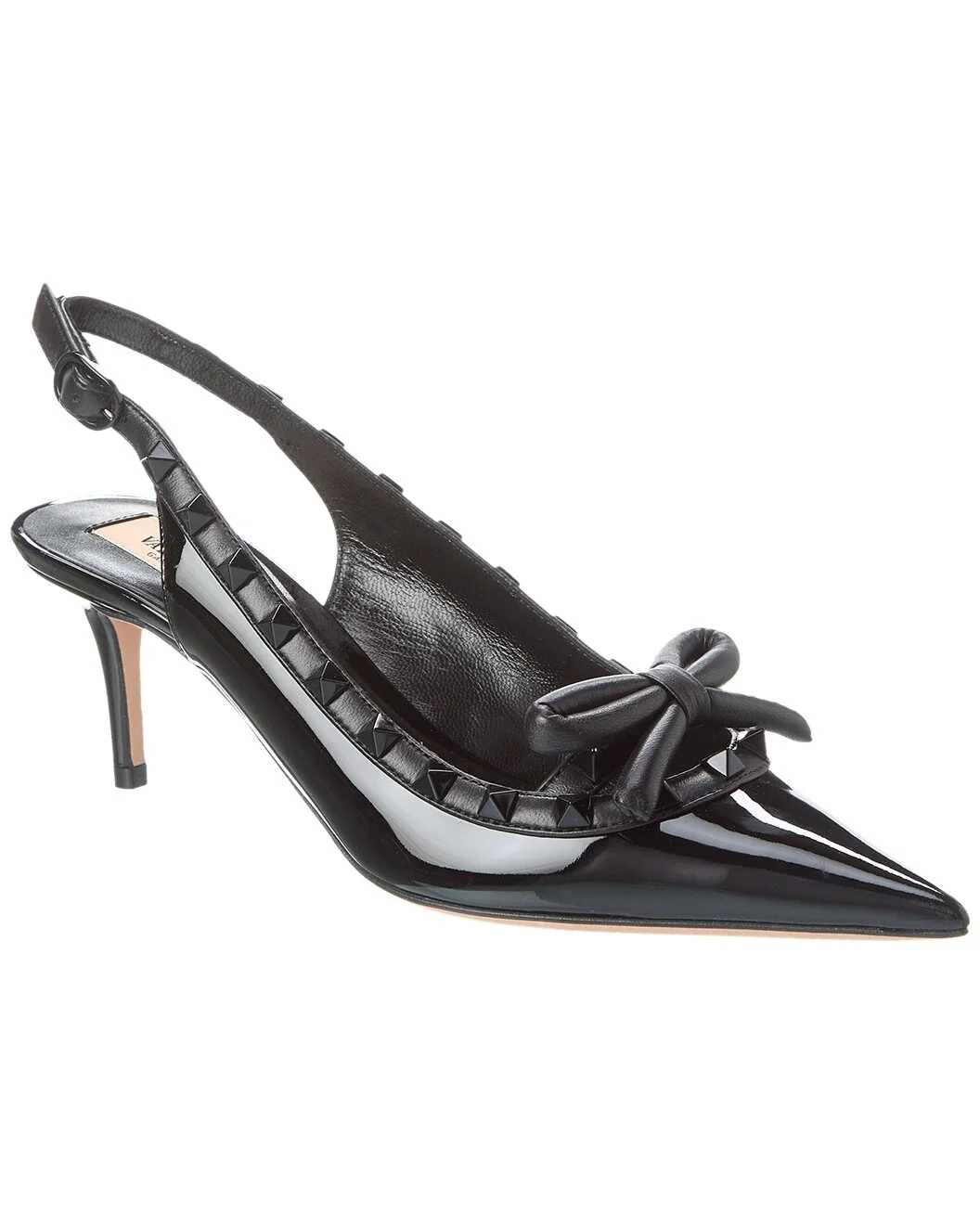 - About the brand: Signature elegance with a modern aesthetic. - Please note: Size selections are European. For US conversions, please reference size chart. - Based on feedback from Members, this brand typically runs small. We suggest sizing up a half size for most styles. - Made in Italy - Rockstud 60 Patent Slingback Pump in black patent leather with tonal rockstuds and padded bow accent - Adjustable ankle strap with buckle closure - Lightly padded leather insole - Smooth leather sole - 2.3in heel - Please note: All measurements are approximate and were taken from a size 37; slight variations may occur. - Our products are 100% genuine. In some cases we purchase merchandise from trusted independent suppliers and not directly from the brand owner. In all cases we stand by the authenticity of every product sold on our site.