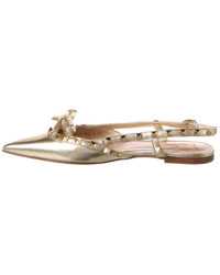 - About the brand: Signature elegance with a modern aesthetic. - Please note: Size selections are European. For US conversions, please reference size chart. - Based on feedback from Members, this brand typically runs small. We suggest sizing up a half size for most styles. - Made in Italy - Rockstud Bow Leather Slingback Ballerina Flat in gold leather with platinum-finish rockstuds and padded bow accent - Adjustable ankle strap with buckle closure - Lightly padded leather insole - Smooth leather sole - Our products are 100% genuine. In some cases we purchase merchandise from trusted independent suppliers and not directly from the brand owner. In all cases we stand by the authenticity of every product sold on our site.