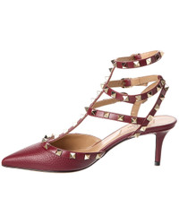 - About the brand: Signature elegance with a modern aesthetic. - Based on feedback from Members, this brand typically runs small. We suggest sizing up a half size for most styles. - Please note: Size selections are European. For US conversions, please reference size chart. - Made in Italy - Rockstud Caged 65 Leather Ankle Strap Pump in red grainy leather with platinum-finish rockstuds - Adjustable ankle strap with buckle closure - Lightly padded leather insole - Smooth leather sole - 2.5in heel - Please note: All measurements are approximate and were taken from a size 37; slight variations may occur. - Our products are 100% genuine. In some cases we purchase merchandise from trusted independent suppliers and not directly from the brand owner. In all cases we stand by the authenticity of every product sold on our site.