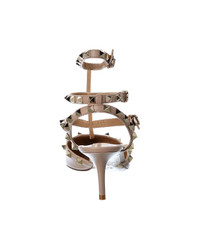 - Based on feedback from Members, this brand typically runs small. We suggest sizing up a half size for most styles. - About the brand: Signature elegance with a modern aesthetic. - Please note: Size selections are European. For US conversions, please reference size chart. - Made in Italy - Rockstud Caged 65 Leather Ankle Strap Pump in powder nappa leather with platinum-finish rockstuds - Adjustable ankle strap with buckle closure - Lightly padded leather insole - Smooth leather sole - 2.5in heel - Please note: All measurements are approximate and were taken from a size 37; slight variations may occur. - Our products are 100% genuine. In some cases we purchase merchandise from trusted independent suppliers and not directly from the brand owner. In all cases we stand by the authenticity of every product sold on our site.