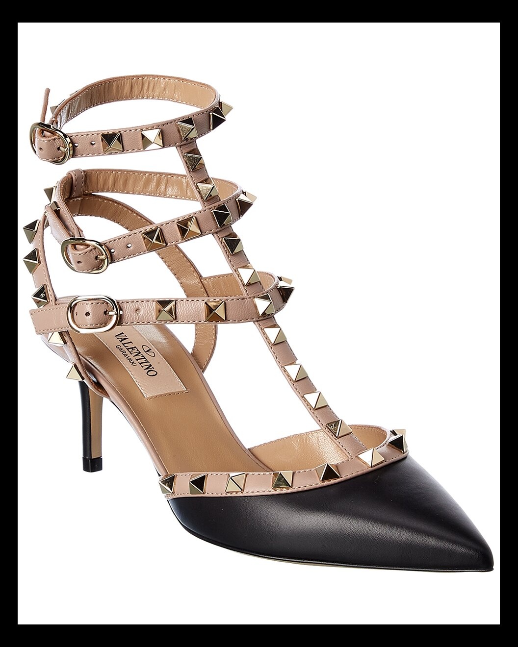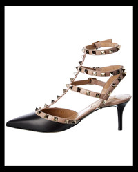 - Based on feedback from Members, this brand typically runs small. We suggest sizing up a half size for most styles. - About the brand: Signature elegance with a modern aesthetic. - Please note: Size selections are European. For US conversions, please reference size chart. - Made in Italy - Rockstud Caged 65 Leather Ankle Strap Pump in black leather with platinum-finish rockstuds and powder leather trim - Adjustable ankle strap with buckle closure - Lightly padded leather insole - Smooth leather sole - 2.5in heel - Please note: All measurements are approximate and were taken from a size 37; slight variations may occur. - Our products are 100% genuine. In some cases we purchase merchandise from trusted independent suppliers and not directly from the brand owner. In all cases we stand by the authenticity of every product sold on our site.