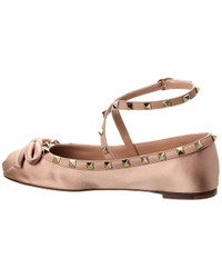 - About the brand: Signature elegance with a modern aesthetic. - Please note: Size selections are European. For US conversions, please reference size chart. - Based on feedback from Members, this brand typically runs small. We suggest sizing up a half size for most styles. - Made in Italy - Rockstud Satin & Leather Flat in nude pink satin and leather with platinum-finish rockstuds - Adjustable ankle strap with buckle closure - Lightly padded leather insole - Smooth leather sole - Our products are 100% genuine. In some cases we purchase merchandise from trusted independent suppliers and not directly from the brand owner. In all cases we stand by the authenticity of every product sold on our site.