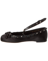 Valentino Rockstud Satin & Leather Ankle Strap Ballerina Flat