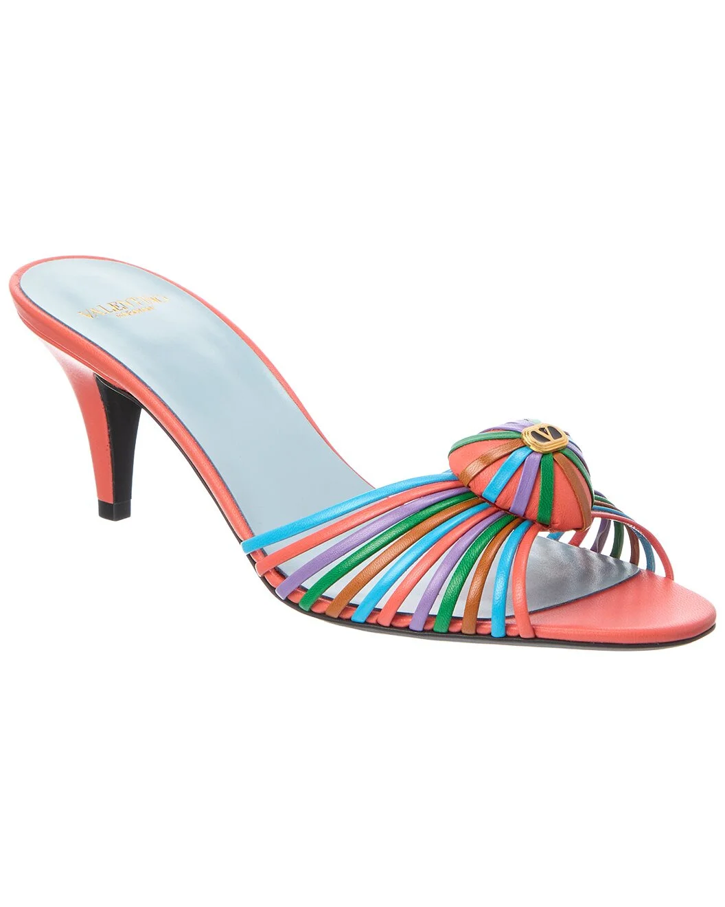 - About the brand: Signature elegance with a modern aesthetic. - Please note: Size selections are European. For US conversions, please reference size chart. - Based on feedback from Members, this brand typically runs small. We suggest sizing up a half size for most styles. - Made in Italy - Royal Heart 65 Leather Sandal in orange multicolor leather and gold-tone hardware with VLogo accent - Lightly padded leather insole - Smooth leather sole - 2.75in heel - Please note: All measurements are approximate and were taken from a size 37; slight variations may occur. - Our products are 100% genuine. In some cases we purchase merchandise from trusted independent suppliers and not directly from the brand owner. In all cases we stand by the authenticity of every product sold on our site.