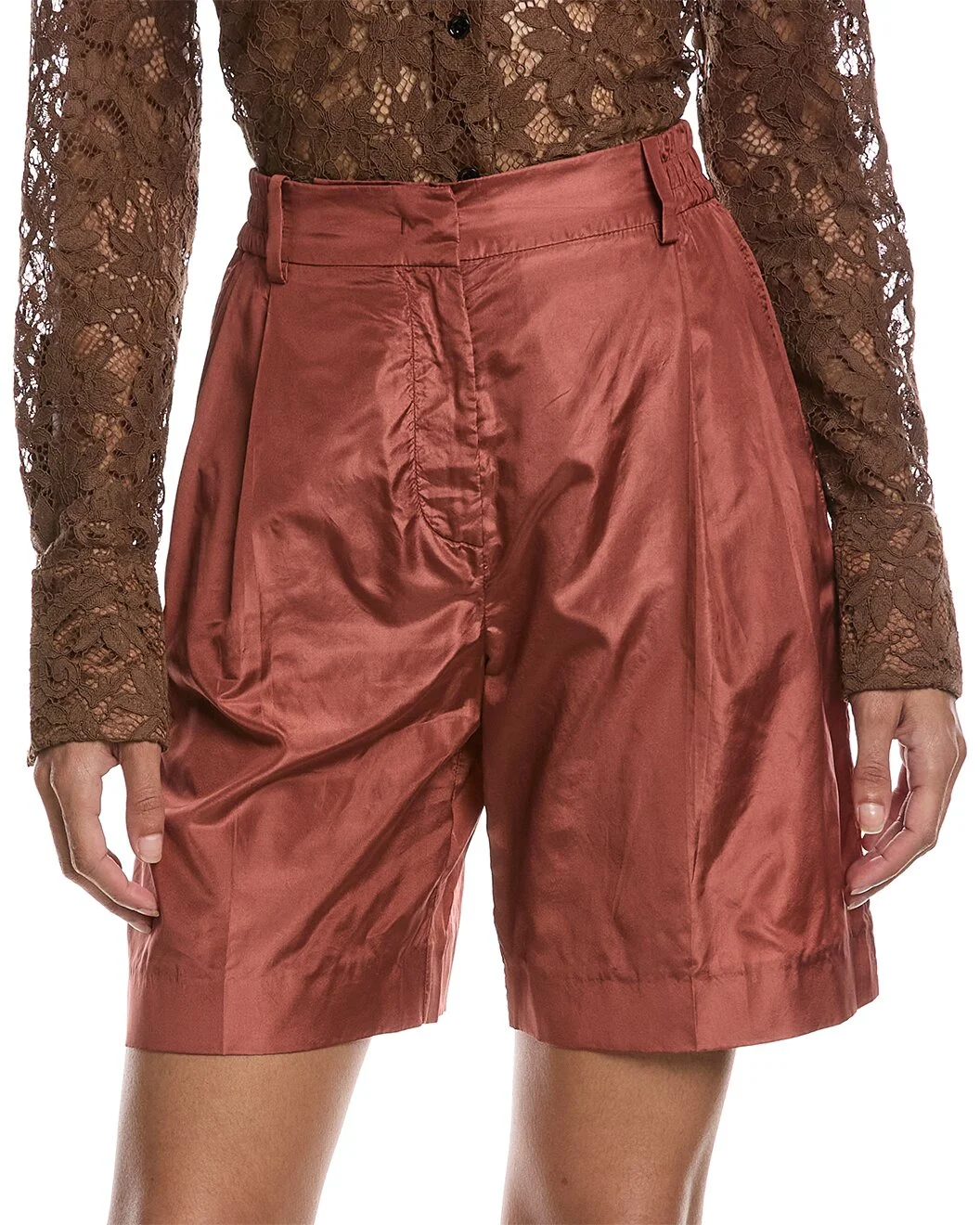 - About the brand: Signature elegance with a modern aesthetic. - Silk Bermuda Short in gingerbread with elasticized waistband, pleated front, and four-pocket styling - Please note: Size selections are European. For US conversions, please reference the size chart. - Inseam approximately 8in; 10.5in rise - Model is 5'9 and is wearing a size 36. Measurements may vary slightly by size. - Zip fly with hook-and-bar closure - 100% silk - Dry clean only - Made in Italy - Our products are 100% genuine. In some cases we purchase merchandise from trusted independent suppliers and not directly from the brand owner. In all cases we stand by the authenticity of every product sold on our site.