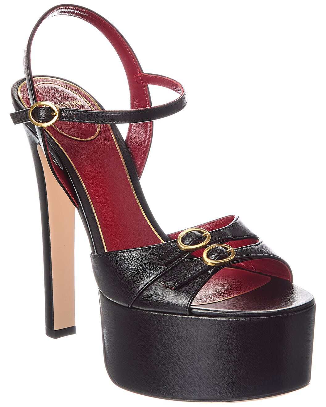 - About the brand: Signature elegance with a modern aesthetic. - Please note: Size selections are European. For US conversions, please reference size chart. - Based on feedback from Members, this brand typically runs small. We suggest sizing up a half size for most styles. - Made in Italy - VLogo 145 Leather Platform Sandal in black leather and gold-tone hardware with VLogo accent and buckle straps - Adjustable ankle strap with buckle closure - Lightly padded leather insole - Smooth leather sole - 5.5in heel - 2in platform - Please note: All measurements are approximate and were taken from a size 37; slight variations may occur. - Our products are 100% genuine. In some cases we purchase merchandise from trusted independent suppliers and not directly from the brand owner. In all cases we stand by the authenticity of every product sold on our site.