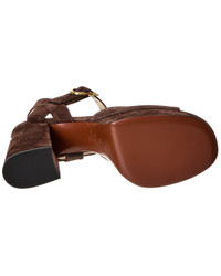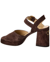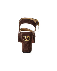 - About the brand: Signature elegance with a modern aesthetic. - Please note: Size selections are European. For US conversions, please reference size chart. - Based on feedback from Members, this brand typically runs small. We suggest sizing up a half size for most styles. - Made in Italy - VLogo Signature 100 Suede Sandal in brown suede and gold-tone hardware with VLogo accent - Adjustable ankle strap with buckle closure - Lightly padded leather insole - Smooth leather sole - 4in heel - 1in platform - Please note: All measurements are approximate and were taken from a size 37; slight variations may occur. - Our products are 100% genuine. In some cases we purchase merchandise from trusted independent suppliers and not directly from the brand owner. In all cases we stand by the authenticity of every product sold on our site.