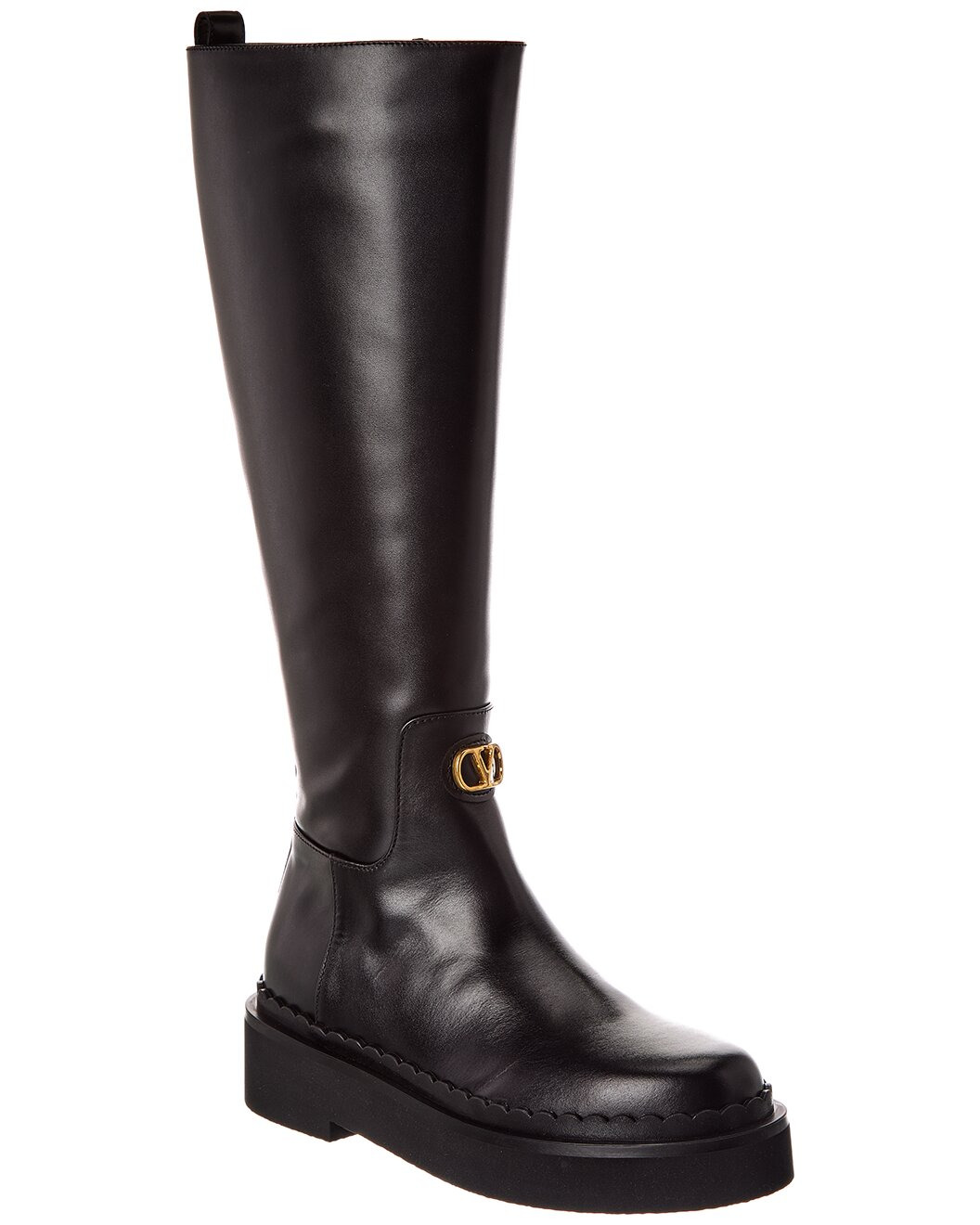 - About the brand: Signature elegance with a modern aesthetic. - Please note: Size selections are European. For US conversions, please reference size chart. - Based on feedback from Members, this brand typically runs small. We suggest sizing up a half size for most styles. - Made in Italy - VLogo Signature 45 Leather Platform Knee-High Boot in black leather and gold-tone hardware with VLogo accent and scalloped trim - Elasticized slip-on style - Lightly padded leather insole - Smooth man-made sole - 1.75in heel - 1in platform - 16in shaft - 14.5in boot circumference - Please note: All measurements are approximate and were taken from a size 37; slight variations may occur. - The Boot Size Guide - Our products are 100% genuine. In some cases we purchase merchandise from trusted independent suppliers and not directly from the brand owner. In all cases we stand by the authenticity of every product sold on our site.