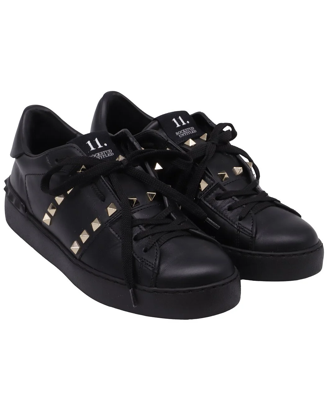 - About the brand: Signature elegance with a modern aesthetic. - This is an authentic, pre-loved piece. This item is in excellent condition, but may show slight signs of wear. This item shows unused or used once, but as good as new. no sign of wear. - For more information on condition, please see our condition guide at the bottom - Color/material: black calfskin leather - Design details: Make a bold yet refined statement with Valentino Garavani Rockstud Untitled Sneakers in black calf leather, crafted with sleek lines and signature pyramid studs for unmistakable edge. The smooth leather finish and minimalist silhouette deliver everyday versatility with elevated designer appeal. Styling tip: Pair them with tailored joggers and a structured blazer for sporty sophistication, or style with distressed denim and a tucked-in silk blouse for effortlessly polished contrast. - 1.57in heel - 10.0in insole length - Accompanied by box and dust bag - Please note: All measurements were taken by hand and are approximate; slight variations may occur. - Available only in Women's size EU 38 - The Pre-Loved Condition Guide - Our products are 100% genuine. In some cases we purchase merchandise from trusted independent suppliers and not directly from the brand owner. In all cases we stand by the authenticity of every product sold on our site.