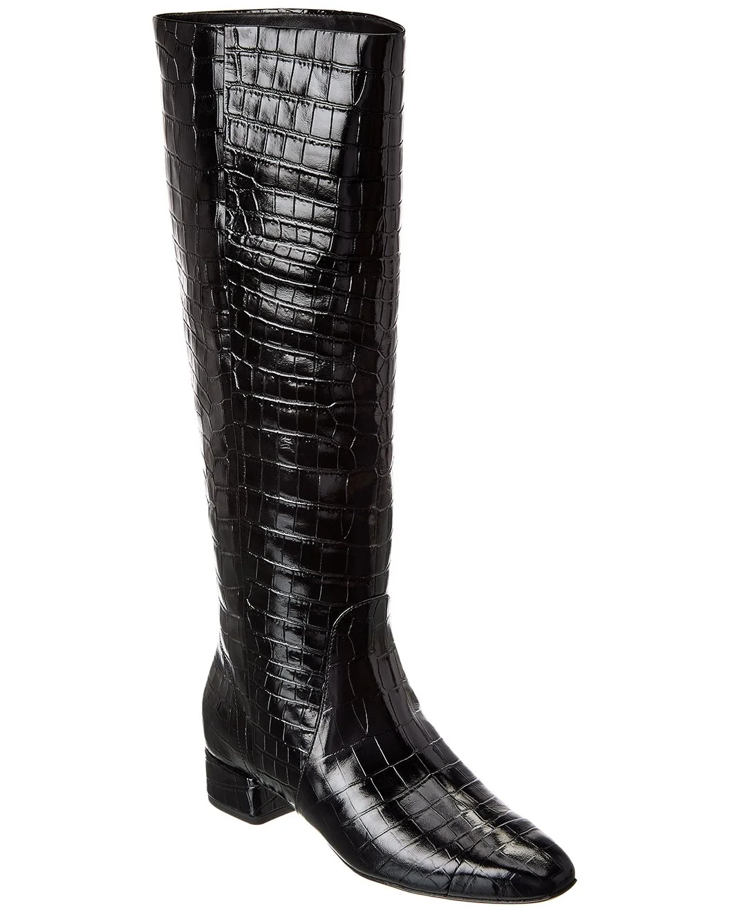Veronica Beard Cecile Croc-Embossed Leather Knee-High Boot