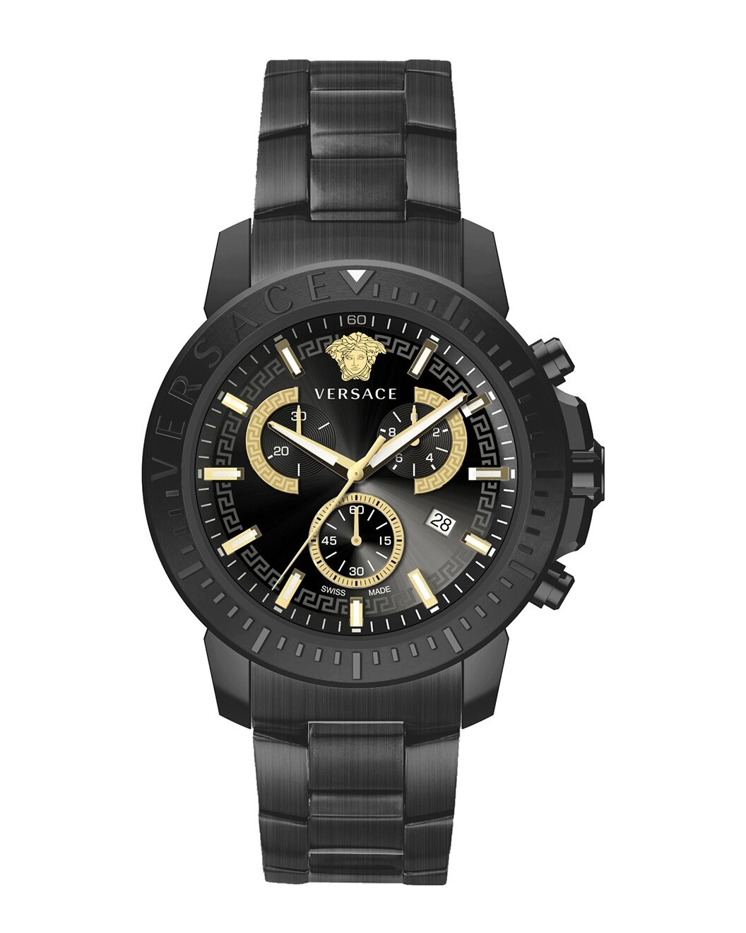 - About the brand: More is more. Bold, sexy & glamorous style from Italy. - 3 Hand Swiss Quartz chronograph movement - Black Stainless Steel bracelet - Deployment clasp - Stainless Steel bezel - Stainless Steel case - Sapphire crystal - Push-pull crown - Black dial - Case: 45mm x 13mm - Bracelet/strap: 22mm wide x 8.5in long - Water-resistant up to 5 meters - Manufacturer's limited warranty - Swiss Made - The Watch Size Guide - Our products are 100% genuine. In some cases we purchase merchandise from trusted independent suppliers and not directly from the brand owner. In all cases we stand by the authenticity of every product sold on our site.