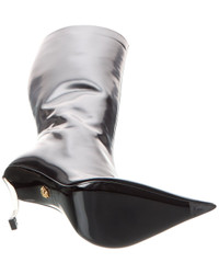 - About the brand: More is more. Bold, sexy & glamorous style from Italy. - Please note: Size selections are European. For US conversions, please reference size chart. - Made in Italy - Pin-Point Leather Knee-High Boot in black leather and gold-tone and silver-tone hardware with pointy-toe and pin heel - Inner side zip-up closure - Lightly padded leather insole - Smooth man-made sole with light traction - 4.5in heel - 15in shaft - 14in boot circumference - Please note: All measurements are approximate and were taken from a size 37; slight variations may occur. - The Boot Size Guide - Our products are 100% genuine. In some cases we purchase merchandise from trusted independent suppliers and not directly from the brand owner. In all cases we stand by the authenticity of every product sold on our site.