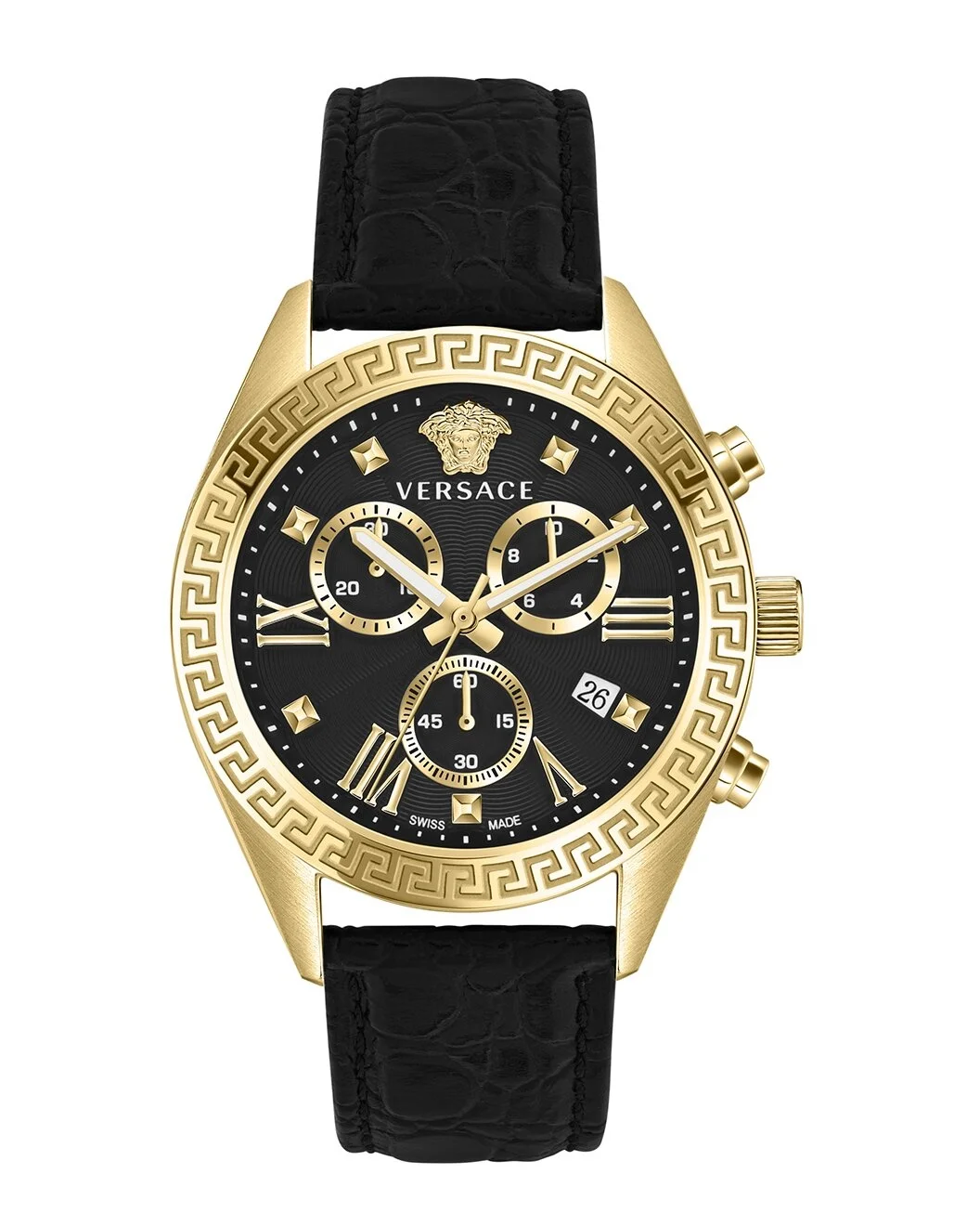 - About the brand: More is more. Bold, sexy & glamorous style from Italy. - Quartz chronograph movement - Black Calf Leather strap - Ardillon clasp - Stainless Steel bezel - Stainless Steel case - Sapphire crystal - Push-pull crown - Black dial - Date display - Case: 40mm x 12mm - Bracelet/strap: 20mm wide x 7.5in long - Water-resistant up to 50 meters - Manufacturer's limited warranty - Chronograph Date Quartz - The Watch Size Guide - Our products are 100% genuine. In some cases we purchase merchandise from trusted independent suppliers and not directly from the brand owner. In all cases we stand by the authenticity of every product sold on our site.