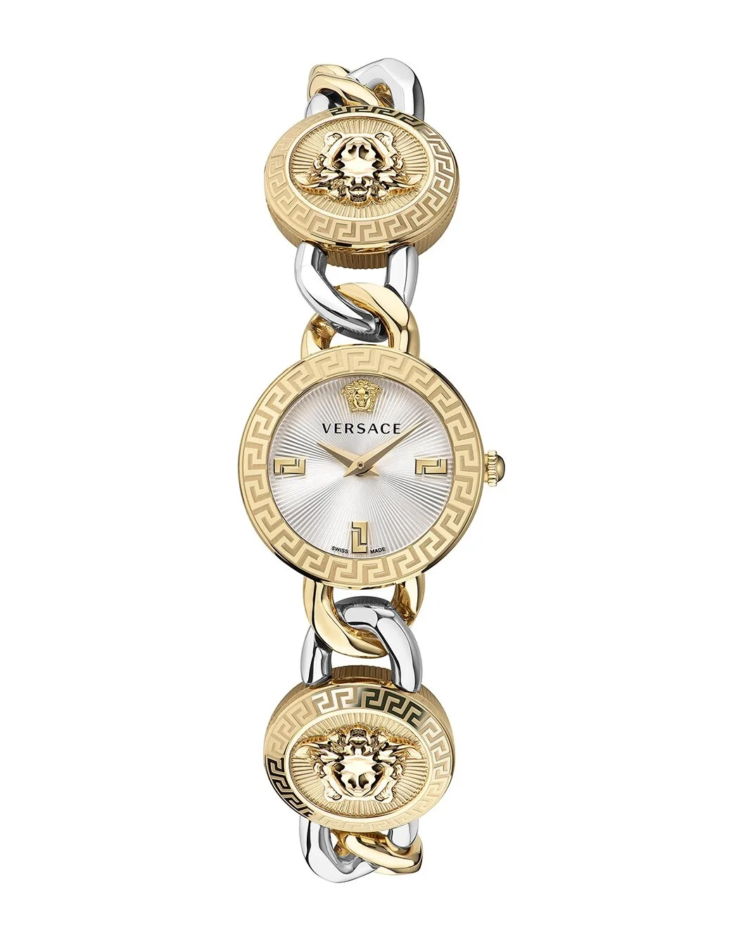 - About the brand: More is more. Bold, sexy & glamorous style from Italy. - 2 Hand Quartz movement - Gold/Silver Stainless Steel bracelet - Jewelry Clasp - Stainless Steel bezel - Stainless Steel case - Sapphire crystal - Push-pull crown - Silver dial - Case: 26mm x 7.4mm - Bracelet/strap: 13mm wide x 6.6in long - Water-resistant up to 30 meters - Manufacturer's limited warranty - Swiss Made - The Watch Size Guide - Our products are 100% genuine. In some cases we purchase merchandise from trusted independent suppliers and not directly from the brand owner. In all cases we stand by the authenticity of every product sold on our site.