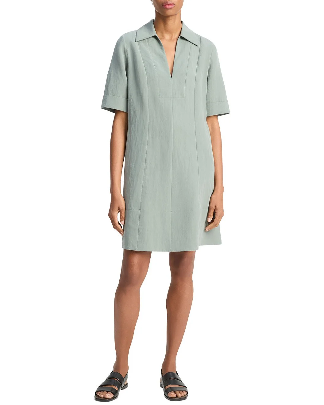 - About the brand: Inspired by the natural beauty of California, Vince is a master of simplicity and laid-back staples. From understated knitwear to tailored essentials, Vince's casual cool vibes are simply timeless. - A-Line Short Dress in clay sage - Approximately 38.5in from shoulder to hem - 84% Tencel lyocell, 9% nylon, 7% wool - Dry clean only - Imported