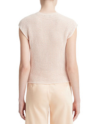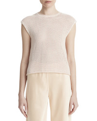 - About the Product: - Breathable Cotton Mesh Stitch Pullover with Cap Sleeves - Color/Pattern: Petal Pearl - Mesh Stitch Construction - Crewneck - Cap Sleeves - Relaxed Fit - 100% Cotton - Hand wash - Made in Italy - About the Brand: - Inspired by the natural beauty of California, Vince is a master of simplicity and laid-back staples. From understated knitwear to tailored essentials, Vince's casual cool vibes are simply timeless.