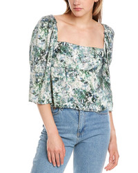 - About the brand: Inspired by the natural beauty of California, Vince is a master of simplicity and laid-back staples. From understated knitwear to tailored essentials, Vince's casual cool vibes are simply timeless. - Painted Floral Top in herb with square neck and pleated shoulders - Approximately 19.5in from shoulder to hem - This item tends to run large (based on Member feedback). We recommend sizing down for your best fit. Model is 5'9.5 and is wearing a size small. Measurements may vary slightly by size. - Center back zipper - 58% viscose, 42% viscose - Dry clean only - Imported