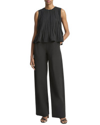 - About the brand: Inspired by the natural beauty of California, Vince is a master of simplicity and laid-back staples. From understated knitwear to tailored essentials, Vince's casual cool vibes are simply timeless. - Pleated A-Line Crewneck Top in black - Approximately 23.25in from shoulder to hem - 100% polyester - Hand wash - Imported