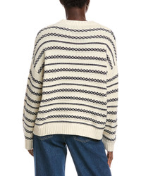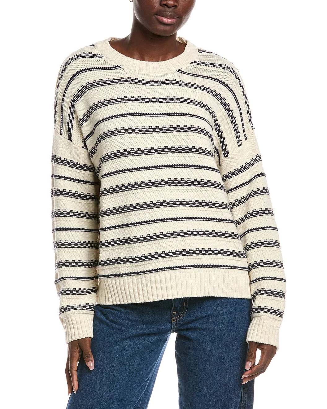 - About the brand: Sophisticated, casual elegance. - Foster Sweater in navy white stripe with crewneck, ribbed trim, and dropped shoulders - Approximately 24in from shoulder to hem - Model is 5'10 and is wearing a size medium. Measurements may vary slightly by size. - Slip-on styling - 60% cotton, 40% acrylic - Hand wash - Imported