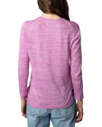 - About the brand: Zadig & Voltaire is a modern and edgy brand that plays with ambiguity in all areas of life. Based in Paris, the brand prides itself on individuality and self expression. Pulling inspiration from literary and art icons through the ages, Zadig & Voltaire embraces strength and inclusivity. - Linen & Silk-Blend Sweater in rose - Approximately 25.6in from shoulder to hem - Design details: V-neck sweater - Slip-on styling - 68% linen 32% silk - Machine wash cold - Imported