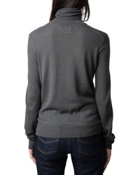 - About the brand: Zadig & Voltaire is a modern and edgy brand that plays with ambiguity in all areas of life. Based in Paris, the brand prides itself on individuality and self expression. Pulling inspiration from literary and art icons through the ages, Zadig & Voltaire embraces strength and inclusivity. - Bobby Cashmere Sweater in ardoise with high-neck - Slip-on styling - 100% cashmere - Machine wash - Imported