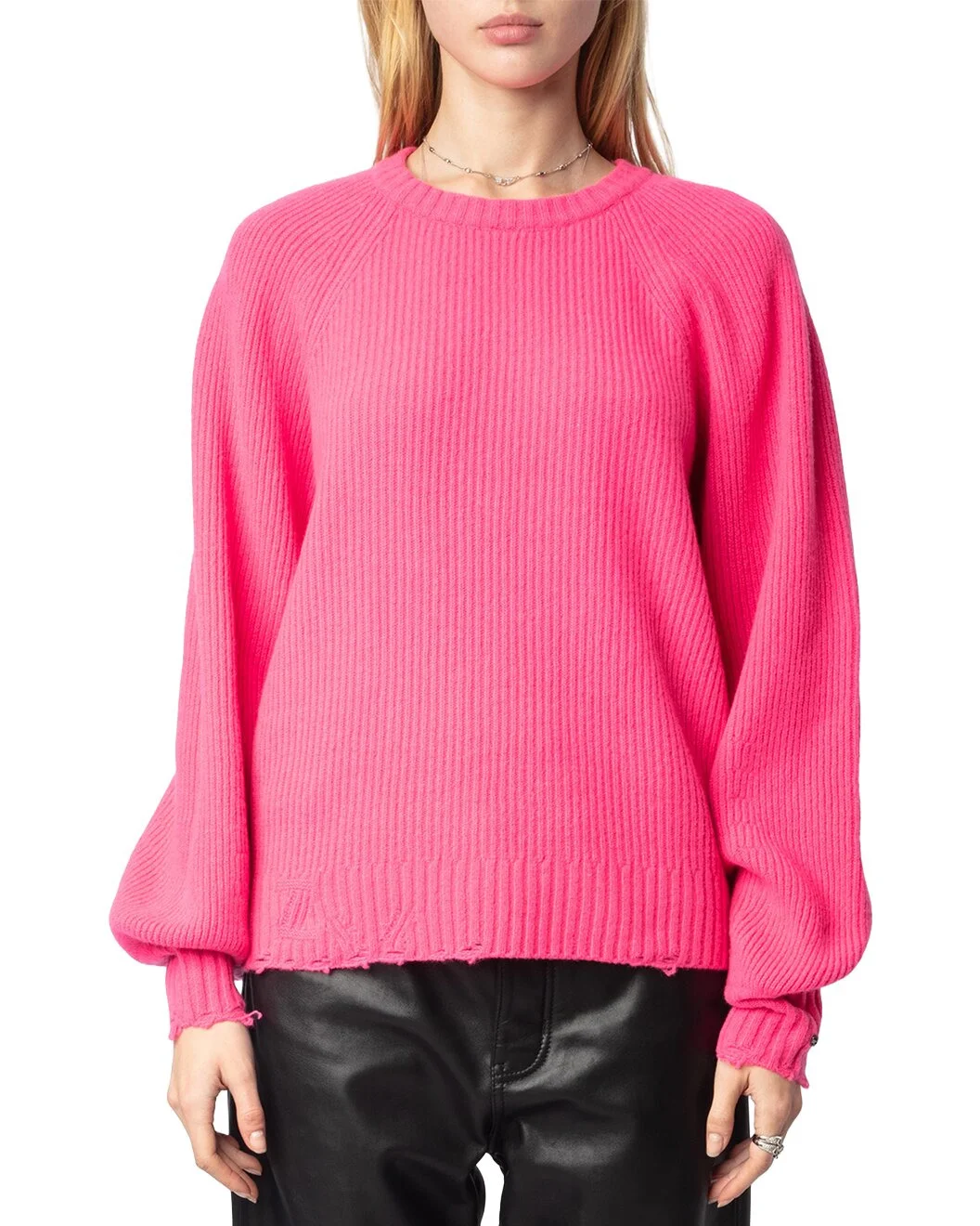 - About the brand: Zadig & Voltaire is a modern and edgy brand that plays with ambiguity in all areas of life. Based in Paris, the brand prides itself on individuality and self expression. Pulling inspiration from literary and art icons through the ages, Zadig & Voltaire embraces strength and inclusivity. - Sweater in fluo pink - Measurements taken from a size medium and may vary slightly by size. - Slip-on styling - 45% Cashmere, 45% Wool, 10% Polyamide - Machine wash cold - Imported
