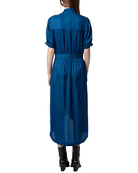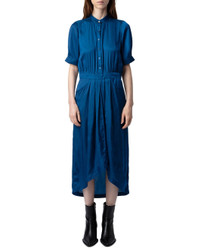 - About the brand: Zadig & Voltaire is a modern and edgy brand that plays with ambiguity in all areas of life. Based in Paris, the brand prides itself on individuality and self expression. Pulling inspiration from literary and art icons through the ages, Zadig & Voltaire embraces strength and inclusivity. - Dress in blue - Design details: Short-sleeved blue Japanese satin midi dress with asymmetrical skirt. - 100% polyester - Machine wash - Imported