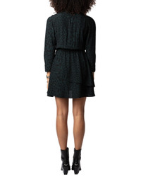 - About the brand: Zadig & Voltaire is a modern and edgy brand that plays with ambiguity in all areas of life. Based in Paris, the brand prides itself on individuality and self expression. Pulling inspiration from literary and art icons through the ages, Zadig & Voltaire embraces strength and inclusivity. - Dress in green - Design details: Mini dark green dress with leopard print, cropped sleeves and draped asymmetrical skirt. - 100% silk - Machine wash - Imported